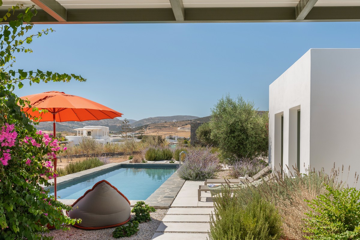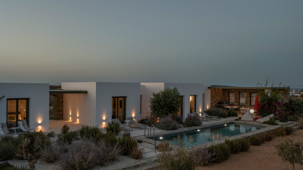 Blending Cycladic simplicity with refined design, Oliva is a peaceful luxury villa in Paros, ideally located just a 7-minute drive from the vibrant harbor of Naoussa and only 4 minutes from the scenic seaside village of Ampelas. Designed for families or groups seeking privacy, comfort, and elegance, the villa offers a seamless indoor–outdoor experience with beautiful views of the Parian landscape and modern amenities for remote work.
